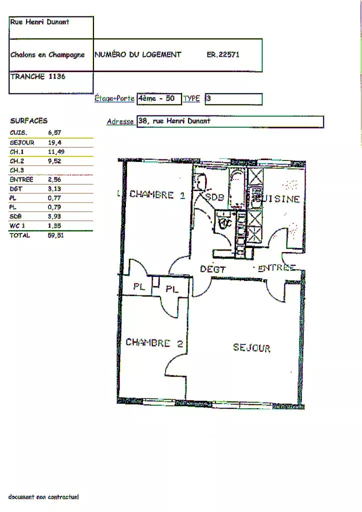 Appartement de type 3 au 4ème étage sans ascenseur.