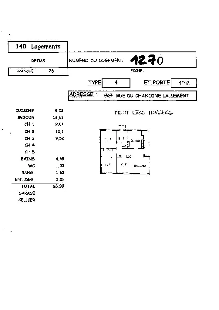 038 RUE CHANOINE LALLEMENT - 51100 REIMS - Marne - Secteur : CHANOINE LALLEMENT